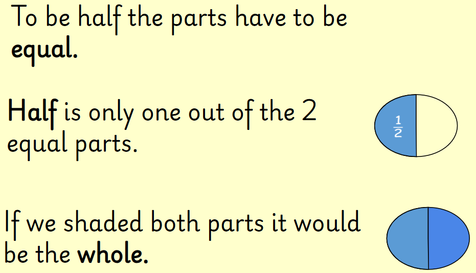 -Recognising what is, and what is not, half of a shape or number.