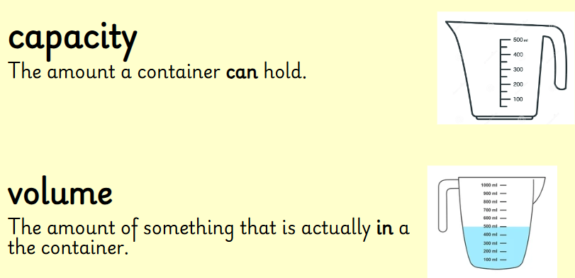 In maths, we are learning about capacity and volume.
