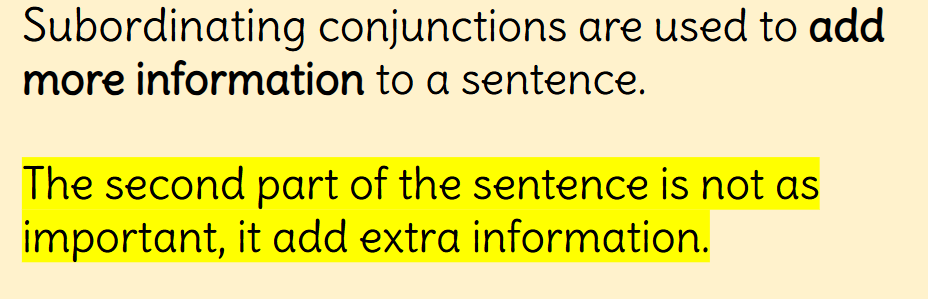 Subordinating conjunctions include: because, that, if, when