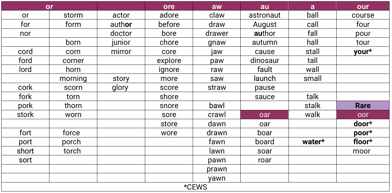 Lesson 3: Teach the /or/ sound spelt aw and au.