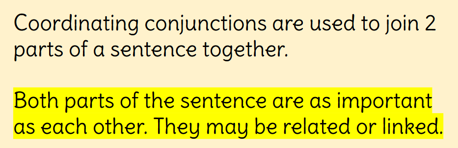 Coordinating conjunctions include: and, but, or